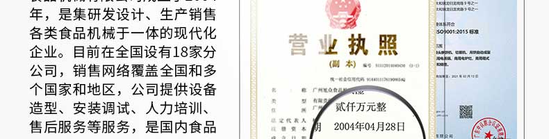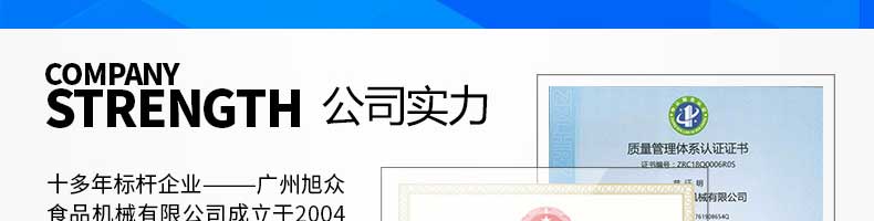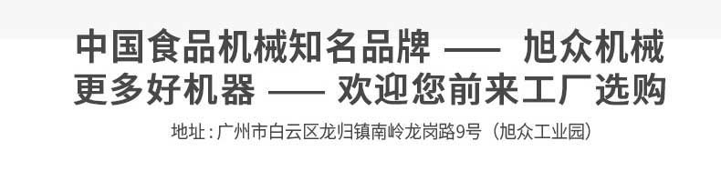 廣州旭眾食品機(jī)械有限公司是一家集科研開發(fā),生產(chǎn)設(shè)計(jì),營銷服務(wù)為一體的現(xiàn)代化生產(chǎn)企業(yè)?,F(xiàn)代化生產(chǎn)車間,精湛制造技術(shù),所產(chǎn)機(jī)械歷經(jīng)市場重重考驗(yàn),不斷贏得海內(nèi)外客戶的贊譽(yù)。