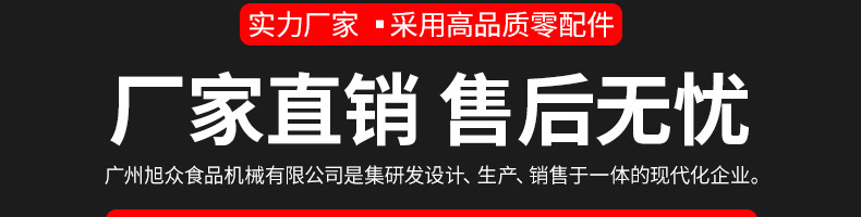 廣州旭眾食品機械有限公司是一家集科研開發(fā),生產(chǎn)設(shè)計,營銷服務(wù)為一體的現(xiàn)代化生產(chǎn)企業(yè)?,F(xiàn)代化生產(chǎn)車間,精湛制造技術(shù),所產(chǎn)機械歷經(jīng)市場重重考驗,不斷贏得海內(nèi)外客戶的贊譽。