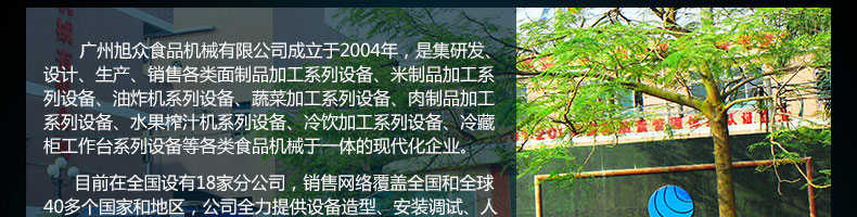 廣州旭眾食品機械有限公司是一家集科研開發(fā),生產(chǎn)設(shè)計,營銷服務(wù)為一體的現(xiàn)代化生產(chǎn)企業(yè)?,F(xiàn)代化生產(chǎn)車間,精湛制造技術(shù),所產(chǎn)機械歷經(jīng)市場重重考驗,不斷贏得海內(nèi)外客戶的贊譽。