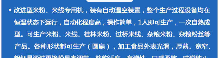 SZ-300多功能米粉機(jī),生產(chǎn)多樣性可生產(chǎn)米粉、米線(xiàn)、粉絲、粉條、、年糕、玉米面條、各種雜糧粉絲、各種面條、雜糧面條、彩色面條以及以紅薯、玉米、大豆、蠶豆等制成淀粉為原料的等多種食品而且每種食品厚薄、粗細(xì)等規(guī)格可根據(jù)需要任意調(diào)整。
