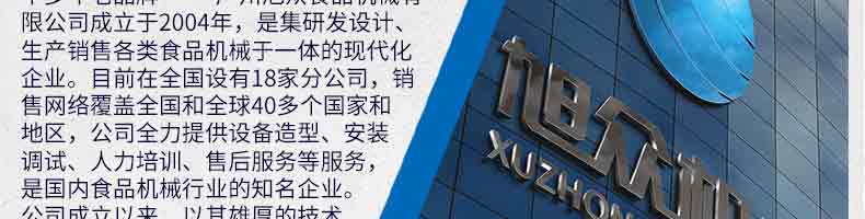 廣州旭眾食品機(jī)械有限公司是一家集科研開(kāi)發(fā),生產(chǎn)設(shè)計(jì),營(yíng)銷服務(wù)為一體的現(xiàn)代化生產(chǎn)企業(yè)。現(xiàn)代化生產(chǎn)車間,精湛制造技術(shù),所產(chǎn)機(jī)械歷經(jīng)市場(chǎng)重重考驗(yàn),不斷贏得海內(nèi)外客戶的贊譽(yù)。