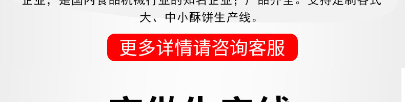 酥餅機(jī)生產(chǎn)線,每小時(shí)產(chǎn)量高達(dá)5000個(gè),生產(chǎn)速度快、效率高。生產(chǎn)速度快,效率高,生產(chǎn)流程流暢,各環(huán)節(jié) 都輔以高密度電控設(shè)備控制,不賭面,不破酥等現(xiàn)象。不賭面輕松應(yīng)對(duì)大客流、不破酥抓住客戶的食欲。